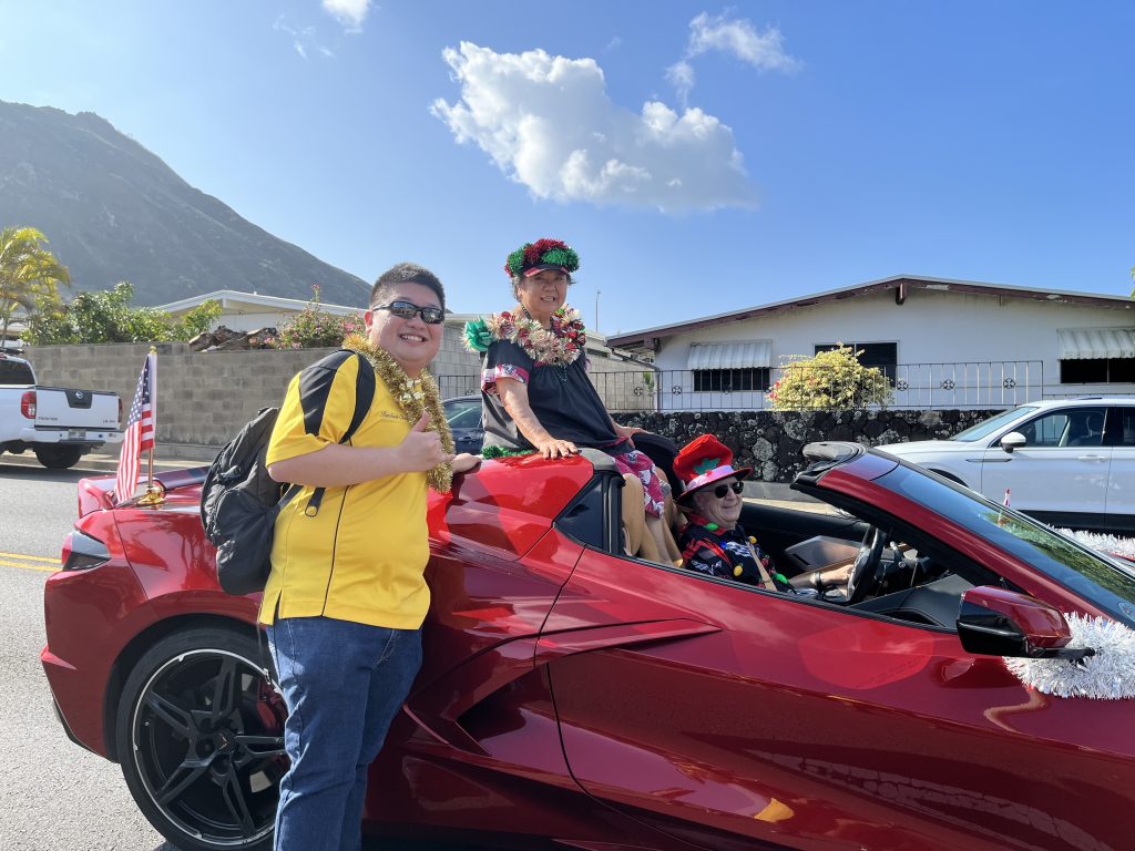 More than 1,200 participants and volunteers and 30 decorated vehicles joined in this year’s parade. Bands including the Kaiser High School Band, McKinley High School Band, the Pacific Fleet Band, and from Ohio, the Worthington Kilbourne Marching Band rang in the holiday season. The Kaiser High School ROTC Color Guard led off the parade followed by hundreds of local preschool and elementary school students, Girls and Boys Scouts, soccer and baseball teams, pageant queens, decorated floats, cheerleaders, drill teams, classic cars, Tae Kwon Do martial artists, and many more.