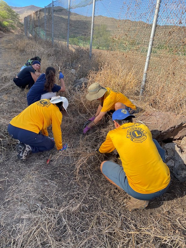 On September 19, 2025, the Kaiwi Coalition and Livable Maunalua Hui team conducted one of its regular Kaiwi Mauka Evenings volunteer workdays in the late afternoon. Efforts were led by Luka Zavas who described some of the history of the Ka Iwi Coast area, the native plants now being nurtured, and the specific goals for the afternoon’s efforts. Thankfully there was a constant breeze, and the area being worked had afternoon shade. Activities focused on removing grass and weeds along a fenceline, retrieving assorted golf balls from the nearby driving range, and watering native plants that had been planted from previous project efforts.